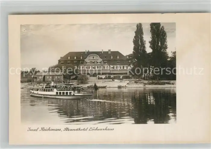 Insel_Reichenau Strandhotel Loechnerhaus Dampfer Insel Reichenau postalisch nicht gelaufen 1921-1965 Erhaltung siehe scans [FriedD77] Frierer