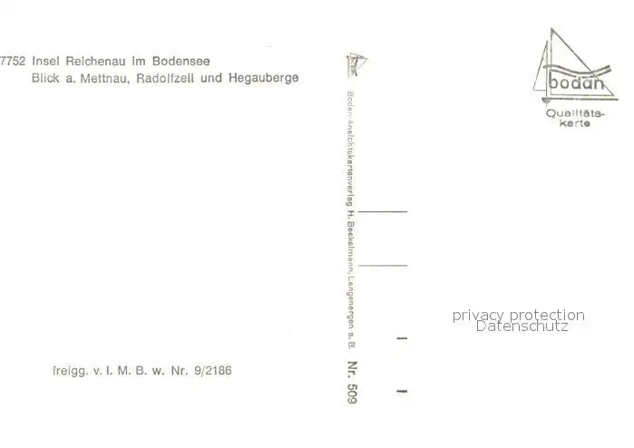 Insel_Reichenau_Bodensee Fliegeraufnahme mit Mettnau Radolfzell und Hegaubergen postalisch nicht gelaufen 1921-1965 Erhaltung siehe scans [WerneD78] WernPID7