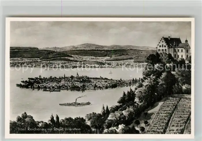 Insel_Reichenau_Bodensee Panorama mit Schloss Salenstein postalisch nicht gelaufen 1921-1965 Erhaltung siehe scans [FriedD77] Frierer