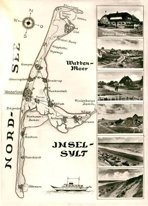 Insel_Sylt Landkarte Nordseeinsel Nordsee Wattenmeer Pension Duenenlandschaft Strand Insel_Sylt postalisch nicht gelaufen 1921-1965 Erhaltung siehe scans [FriedD77] Frierer