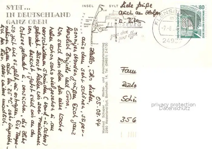 Insel_Sylt Landschaftspanorama Steilkueste Duenen Friesenhaus Brandung Moewen Insel_Sylt postalisch gelaufen 1994 Erhaltung siehe scans [FriedD77] Frierer