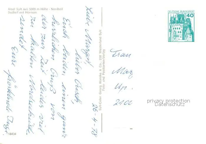 Insel_Sylt Nordtel und Suedteil mit Hoernum Fliegeraufnahme Insel_Sylt postalisch gelaufen 1978 Erhaltung siehe scans [WerneD78] WernPID7