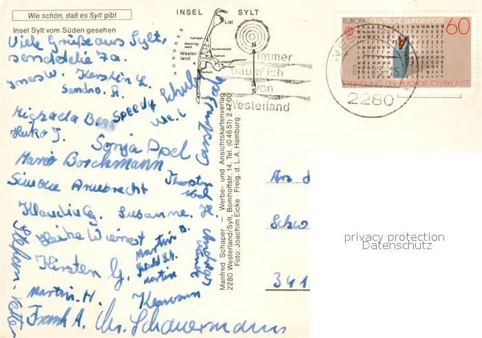 Insel_Sylt vom Sueden gesehen Fliegeraufnahme Insel_Sylt postalisch gelaufen 1983 Erhaltung siehe scans [FriedD77] Frierer