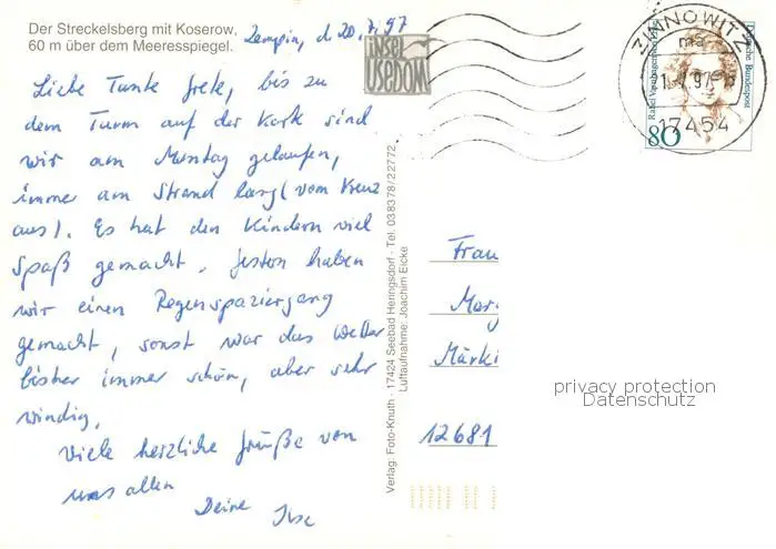Insel_Usedom Streckelsberg mit Koserow Fliegeraufnahme Insel Usedom postalisch gelaufen 1997 Erhaltung siehe scans [WerneD78] WernPID7