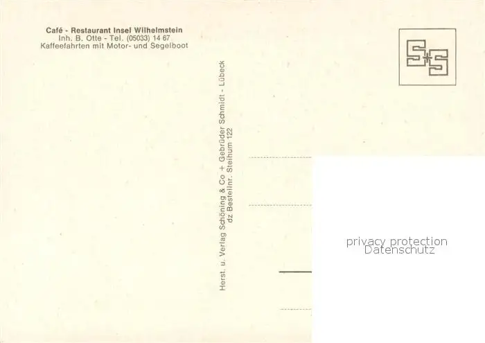 Insel_Wilhelmstein Caf? Restaurant Insel_Wilhelmstein postalisch nicht gelaufen nach 1965 Erhaltung siehe scans [LiesaD40] LiesID40