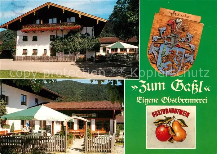 AK / Ansichtskarte Inzell Gasthaus Zum Gassl Obstbranntwein Wappen Inzell