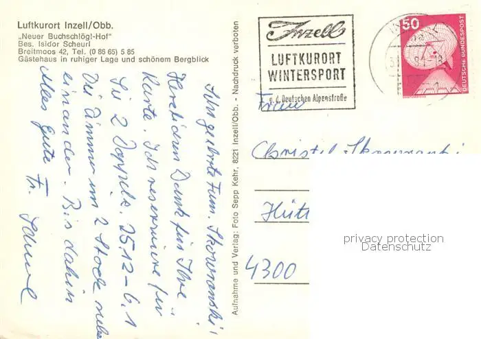 Inzell Neuer Buchschloegl Hof Gaestehaus Pension Stadtpanorama Alpen Inzell postalisch gelaufen 1981 Erhaltung siehe scans [FriedD77] Frierer