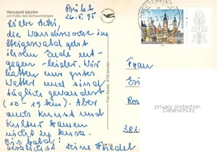 Iphofen Fliegeraufnahme Iphofen postalisch gelaufen 1995 Erhaltung siehe scans [WerneD78] WernPID7