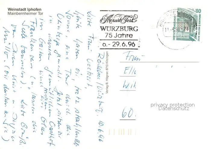 Iphofen Mainbernheimer Tor Iphofen postalisch gelaufen 1996 Erhaltung siehe scans [WerneD78] WernPID7