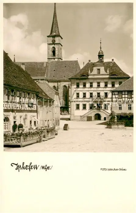 Iphofen Marktplatz Altstadt Gasthof Fachwerkhaeuser Blick zur Stadtpfarrkirche Iphofen postalisch nicht gelaufen 1921-1965 Erhaltung siehe scans [FriedD77] Frierer