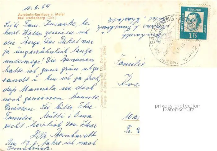 Irschenberg Autobahn Rasthaus und Motel Fliegeraufnahme Irschenberg postalisch gelaufen 1964 Erhaltung siehe scans [WerneD78] WernPID7