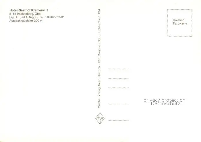 Irschenberg Hotel Gasthof Kramerwirt Irschenberg postalisch nicht gelaufen nach 1965 Erhaltung siehe scans [FriedD77] Frierer