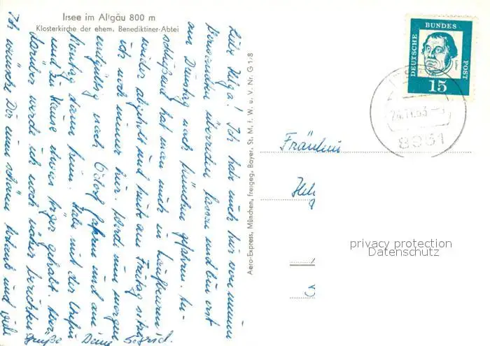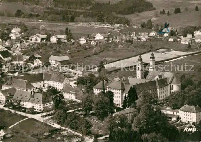 Irsee Kategorie Alte Ansichtskarten Postkarten bx66546 Irsee Klosterkirche der ehem Benediktiner Abtei Fliegeraufnahme Irsee postalisch gelaufen 1965 Erhaltung siehe scans [WerneD78]
