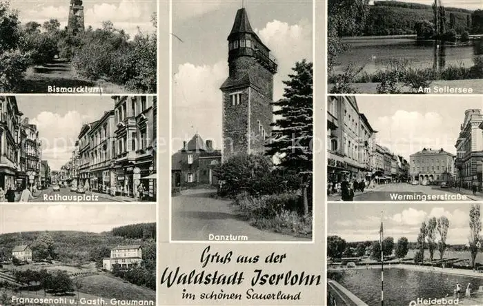 AK / Ansichtskarte Iserlohn Bismarckturm Seilersee Danzturm Rathausplatz Heidebad Iserlohn