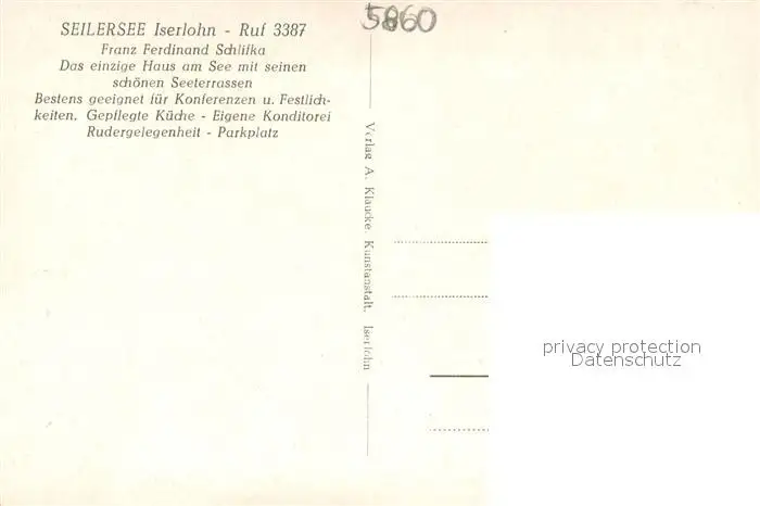 Iserlohn Seilersee Haus am See m. Seeterrasse Iserlohn postalisch nicht gelaufen 1921-1965 Erhaltung siehe scans [LiesaD40] LiesID40