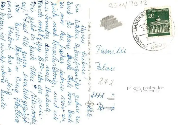 Isny_Allgaeu Marktplatz Grabenweiher Rathaus Isny Allgaeu postalisch gelaufen 1971 Erhaltung siehe scans [NatalD47] NataID47