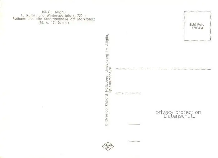 Isny_Allgaeu Rathaus Stadtapotheke Marktplatz Isny Allgaeu postalisch nicht gelaufen nach 1965 Erhaltung siehe scans [NatalD47] NataID47