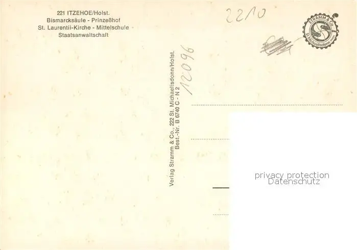Itzehoe Bismarcksaeule Prinzesshof St Laurentii Kirche Mittelschule Staatsanwaltschaft Itzehoe postalisch nicht gelaufen nach 1965 Erhaltung siehe scans [FriedD77] Frierer
