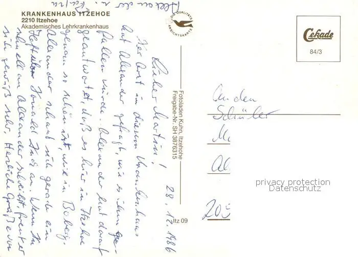 Itzehoe Krankenhaus Itzehoe Fliegeraufnahme Itzehoe postalisch nicht gelaufen 1986 Erhaltung siehe scans [WerneD78] WernPID7