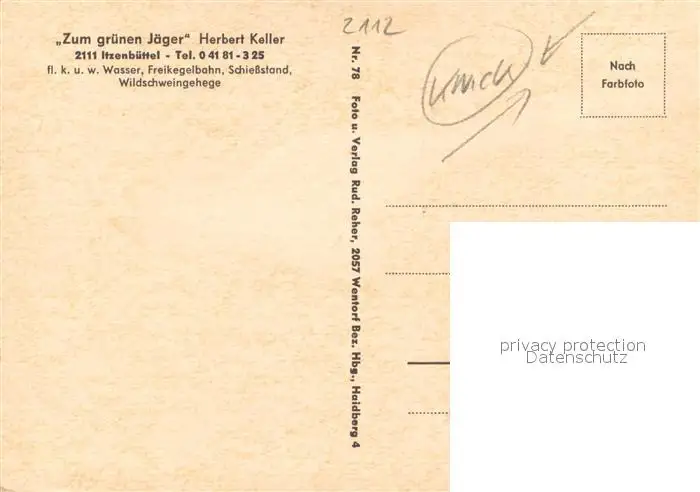 Itzenbuettel Gasthof Zum gruenen Jaeger Aussenansicht Itzenbuettel postalisch nicht gelaufen nach 1965 Erhaltung siehe scans [LiesaD40] LiesID40