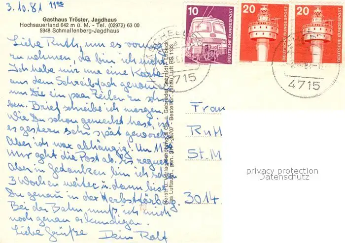 Jagdhaus_Sauerland Fliegeraufnahme Gasthaus Troester Jagdhaus_Sauerland postalisch gelaufen 1981 Erhaltung siehe scans [KathaD81] Kathoren