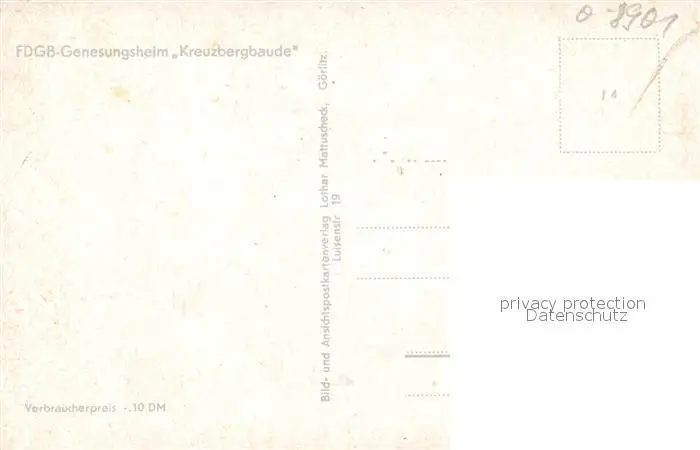Jauernick-Buschbach FDGB Genesungsheim Kreuzbergbaude Jauernick-Buschbach postalisch nicht gelaufen 1950 Erhaltung siehe scans [FriedD77] Frierer