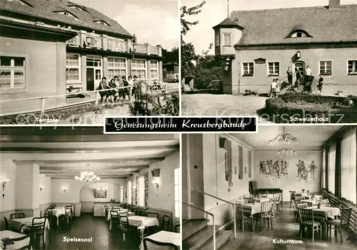 Jauernick-Buschbach Genesungsheim Kreuzbergbaude Terrasse Schweizerhaus Kulturraum Speisesaal Jauernick-Buschbach postalisch gelaufen 1974 Erhaltung siehe scans [FriedD77] Frierer