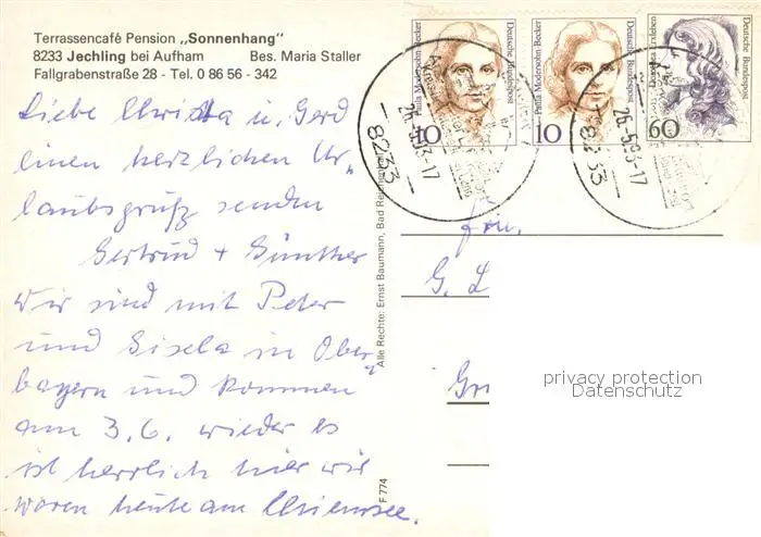 Jechling Terrassen-Café Pension Sonnenhang Panorama Alpen Jechling postalisch gelaufen 1993 Erhaltung siehe scans [FriedD77] Frierer