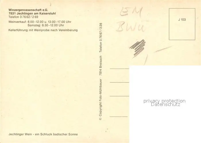 Jechtingen Panorama Fachwerkhaeuser Wandteller Jechtingen postalisch nicht gelaufen nach 1965 Erhaltung siehe scans [WerneD78] WernPID7