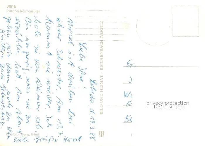 Jena_Thueringen Platz der Kosmonauten Jena Thueringen postalisch gelaufen 1988 Erhaltung siehe scans [FriedD77] Frierer