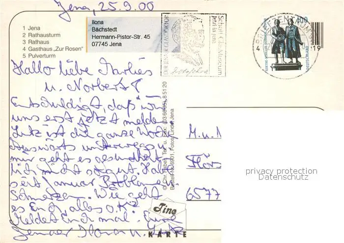 Jena_Thueringen Rathausturm Gasthaus Zur Rosen Pulverturm Jena Thueringen postalisch gelaufen 2000 Erhaltung siehe scans [NatalD47] NataID47