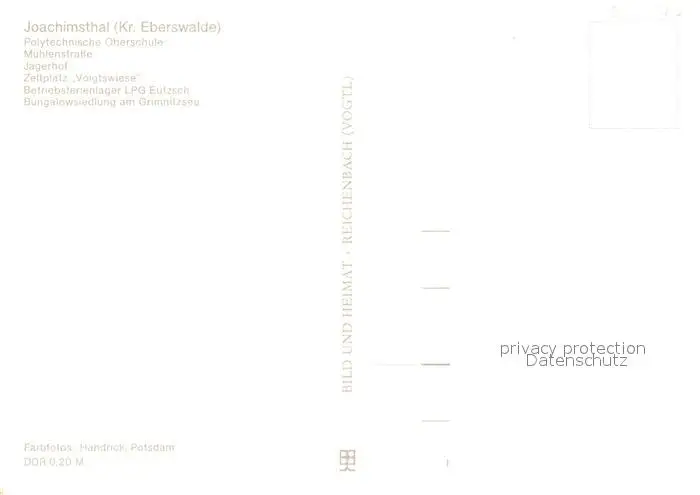 Joachimsthal Polytechn Oberschule Muehlenstrasse Jaegerhof Zeltplatz Voigtswiese Betriebsferienlager LPG Eutzsch Bungalowsiedlung am Grimnitzsee Joachimsthal postalisch nicht gelaufen nach 1965 Erhaltung siehe scans [WerneD78] WernPID7