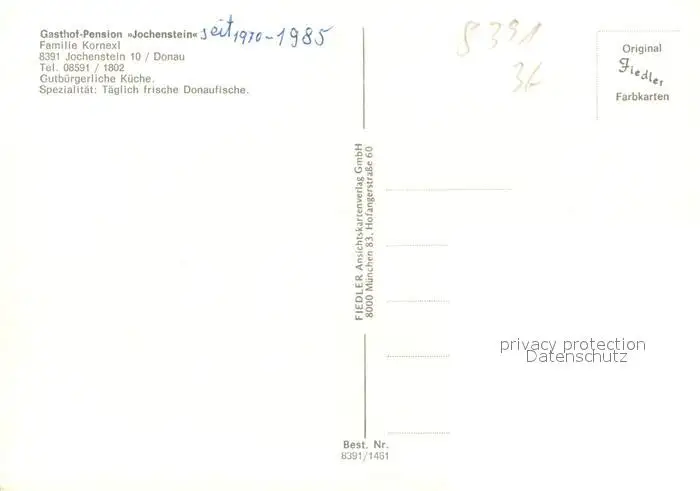 Jochenstein_Niederbayern Gasthof Pension Jochenstein Jochenstein_Niederbayern postalisch nicht gelaufen 1985 Erhaltung siehe scans [FriedD77] Frierer