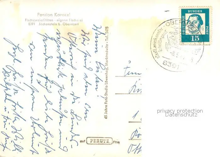 Jochenstein_Niederbayern Jochenstein Werk Nepomuk Pension Kornexl Jochenstein_Niederbayern postalisch gelaufen 1965 Erhaltung siehe scans [WerneD78] WernPID7
