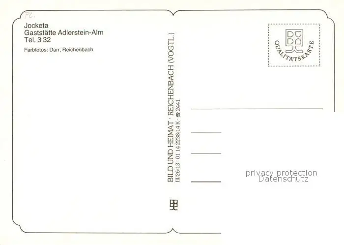 Jocketa Gaststaette Adlerstein Alm Jocketa postalisch nicht gelaufen nach 1965 Erhaltung siehe scans [WerneD78] WernPID7