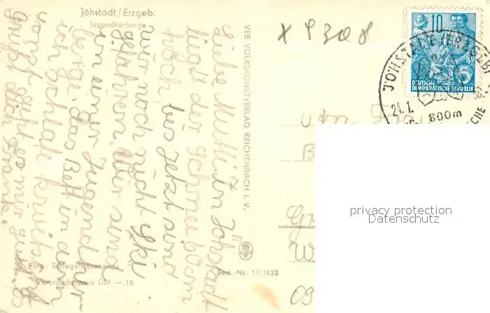 Joehstadt Jugendherberge Joehstadt postalisch gelaufen 1958 Erhaltung siehe scans [FriedD77] Frierer