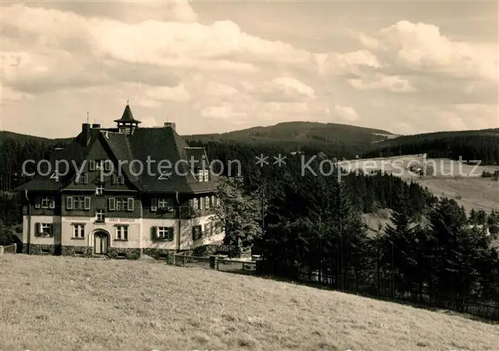 AK / Ansichtskarte Johanngeorgenstadt Jugendherberge Ernst Schneller mit Plattenberg Handabzug Johanngeorgenstadt