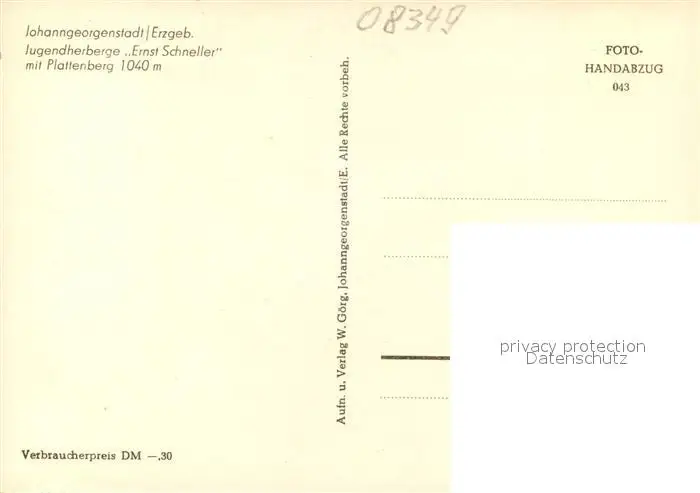 Johanngeorgenstadt Jugendherberge Ernst Schneller mit Plattenberg Handabzug Johanngeorgenstadt postalisch nicht gelaufen 1965 Erhaltung siehe scans [FriedD77] Frierer
