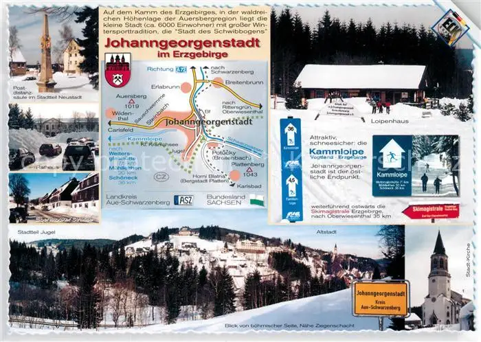 AK / Ansichtskarte Johanngeorgenstadt Postdistanzsaeule Jguel Rathaus Johanngeorgenstadt