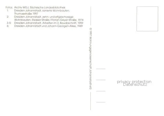 Johannstadt 40 Jahre Wohnungsgenossenschaft Wohnsiedlungen 1997 1974 1959 und 1949 Johannstadt postalisch nicht gelaufen nach 1965 Erhaltung siehe scans [FriedD77] Frierer