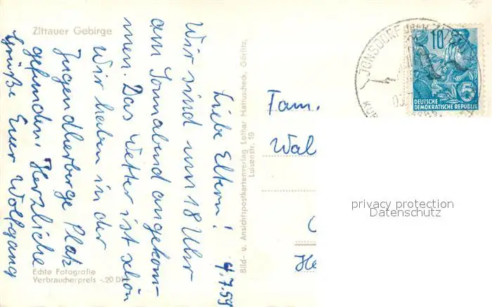 Jonsdorf Gondelfahrt mit Nonnenfelsen Zittauer Gebirge Jonsdorf postalisch gelaufen 1959 Erhaltung siehe scans [FriedD77] Frierer