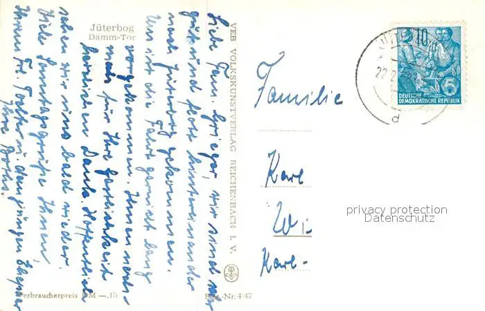 Jueterbog Dammtor Turm Jueterbog postalisch gelaufen 1958 Erhaltung siehe scans [FriedD77] Frierer