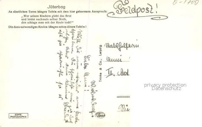 Jueterbog Kirche Rathaus Dammtor Schlossteich Stadtmauer Neumarkttor Badeanstalt Freibad Wappen Feldpost Jueterbog postalisch nicht gelaufen 1921-1965 Erhaltung siehe scans [FriedD77] Frierer