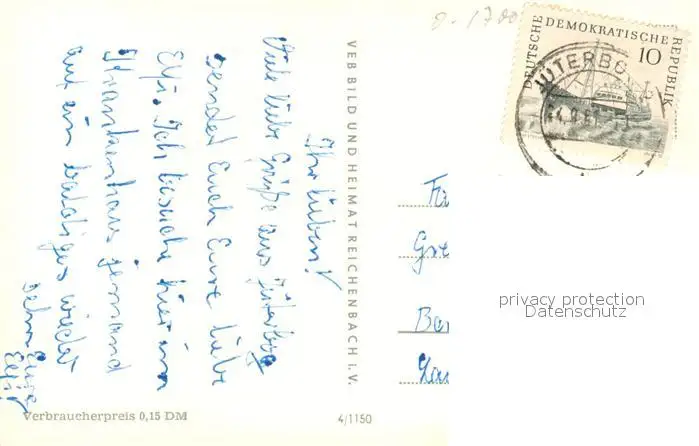 Jueterbog Pferdestrasse Dammtor Wehrtuerme Platz der Jugend Zinnaer Tor Wappen Jueterbog postalisch gelaufen 1961 Erhaltung siehe scans [FriedD77] Frierer