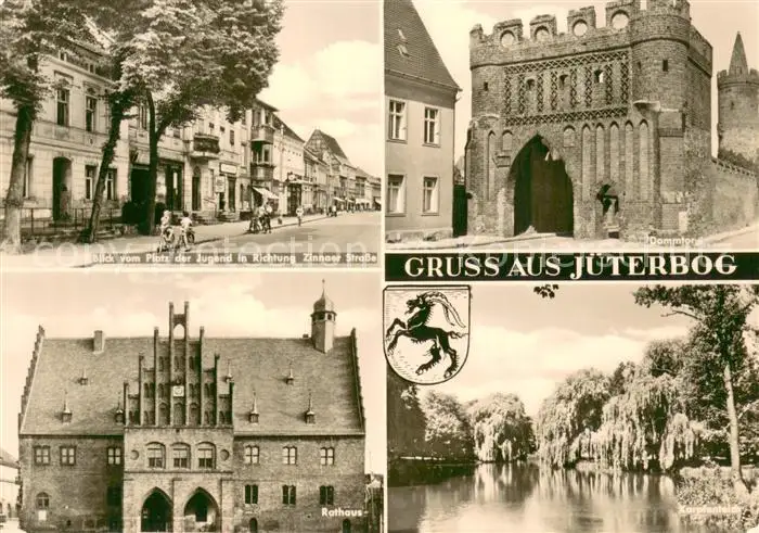 AK / Ansichtskarte Jueterbog Zinnaer Strasse Dammtor Rathaus Karpfenteich Jueterbog