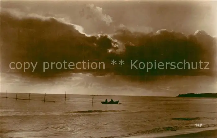 Juist_Nordseebad Fischerboot Strand Abendstimmung Nordseeinsel Juist_Nordseebad postalisch nicht gelaufen 1921-1965 Erhaltung siehe scans [FriedD77] Frierer