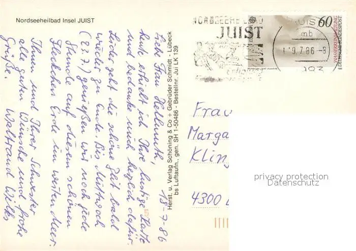 Juist_Nordseebad Fliegeraufnahme Juist_Nordseebad postalisch gelaufen 1986 Erhaltung siehe scans [KathaD81] Kathoren
