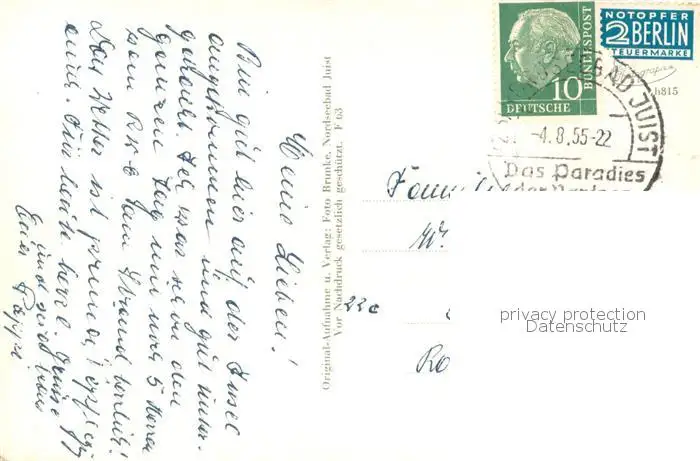 Juist_Nordseebad Strand Fliegeraufnahme Juist_Nordseebad postalisch gelaufen 1955 Erhaltung siehe scans [WerneD78] WernPID7