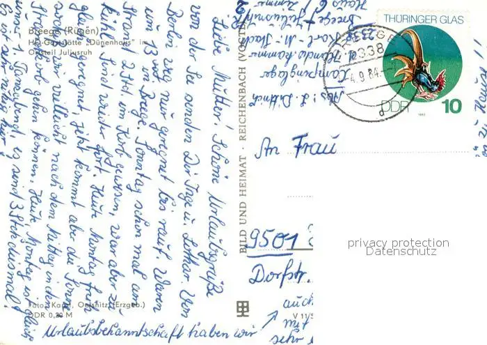 Juliusruh_Ruegen HO Gaststaette Duenenhaus Juliusruh Ruegen postalisch gelaufen 1984 Erhaltung siehe scans [FriedD77] Frierer