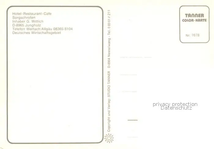 Jungholz_Wertach Hotel Restaurant Café Sorgschrofen Allgaeuer Alpen Jungholz Wertach postalisch nicht gelaufen nach 1965 Erhaltung siehe scans [FriedD77] Frierer